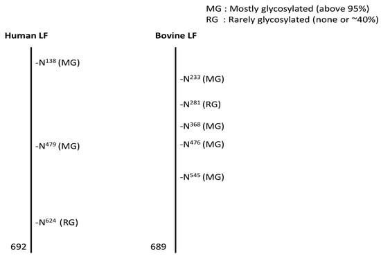 - Yu, T.; Guo, C.; Wang, J.; Hao, P.; Sui, S.; Chen, X.; Zhang, R.; Wang, P.; Yu, G.; Zhang, L. Comprehensive characterization of the site-specific N-glycosylation of wild-type and recombinant human lactoferrin expressed in the milk of transgenic cloned cattle. Glycobiology 2011, 21, 206–224. [Google Scholar] [CrossRef] [PubMed]
