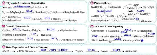| MGD | Rice (O. sativa) | Monogalactosyl-diacylglycerol synthase | NaCl (0, 200 mM; 10 days) | [38] |