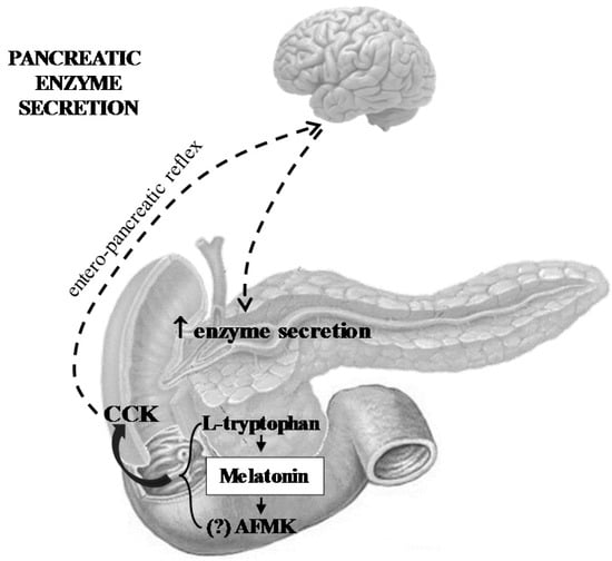 - Melatonin and its related molecules may be involved in the physiological stimulation of pancreatic exocrine secretion dependent on the stimulation of CCK release and activation of duodeno-pancreatic neural reflex (Figure 1).