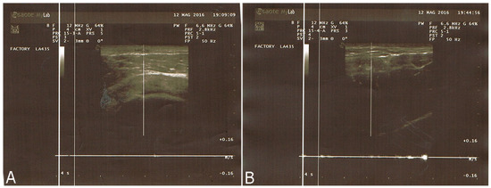 The patients were informed of standard preoperative instructions, including the use of antibiotics and recommendations against the use of aspirin and derivatives at least one week before surgery. For all the patients, the same technique of autologous fat grafting was performed. Tumescent injection was used (we used 1:200,000 epinephrine injected through a 22-gauge spinal needle before aspiration). The fat donor sites were the hips, the abdomen, the trochanteric area, and the inner sides of the thigh and knees. The fat was collected using a two-holed blunt harvesting cannula (3-mm inner diameter) attached to a 10-mL Luer-Lok syringe (Becton Dickinson, Franklin Lakes, NJ, USA), progressively applying a gentle negative pressure and pulling gradually back on the plunger. The capped 10-mL Luer-Lok syringes were placed in a centrifuge and spun at 1300 rpm (250× g) for 5 min. Following the centrifugation procedure, three layers were obtained from the specimens: an oily yellow top layer acquired from the destroyed fatty tissue fragments, a central layer of adipose tissue graft, and a bottom layer composed of blood. After discarding the oil (superiorly) and the blood (inferiorly), we collected the middle layer and in particular, due to the short oil derived residual properties, we selected the lower two-thirds of purified lipoaspirate deposited in the lower part of the syringe near the needle after the removal of red cells.