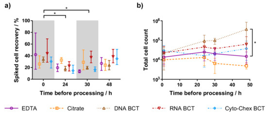 - Qin, J.; Alt, J.R.; Hunsley, B.A.; Williams, T.L.; Fernando, M.R. Stabilization of circulating tumor cells in blood using a collection device with a preservative reagent. Cancer Cell Int. 2014, 14, 23. [Google Scholar] [CrossRef] [PubMed]