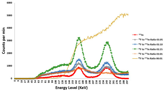 18F and 111In spectrum comparison at different ratios.
