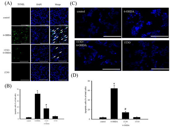 2.2. Effect of 1T3O on 6-OHDA-Induced SH-SY5Y Neuroblastoma Apoptosis