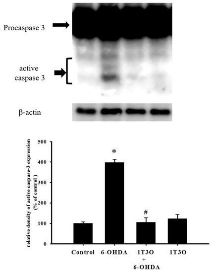 2.4. Effect of 1T3O on 6-OHDA-Induced Activation of Cellular Caspase-3