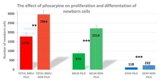 2.1. The Effect of Pilocarpine on Proliferation of Newborn Cells