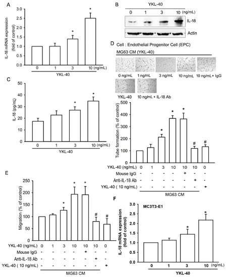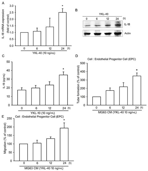 2.1. YKL-40 Promotes IL-18 Production in Osteoblasts and Facilitates EPC Angiogenesis