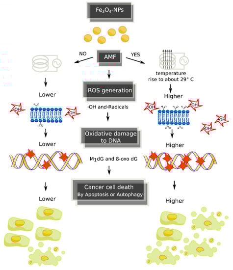 - Shaw, J.; Raja, S.O.; Dasgupta, A.K. Modulation of cytotoxic and genotoxic effects of nanoparticles in cancer cells by external magnetic field. Cancer Nanotechnol. 2014, 5, 2. [Google Scholar] [CrossRef] [PubMed]