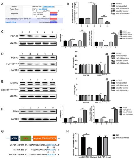 2.3. miR-195 Targets FGF-18 and Regulates Its Downstream Pathway