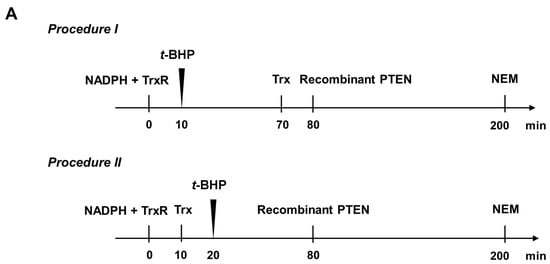 2.4. t-BHP Inhibits the Reduction of Oxidized PTEN by the Trx System