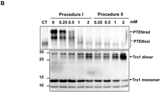 - Han, S.J.; Ahn, Y.; Park, I.; Zhang, Y.; Kim, I.; Kim, H.W.; Ku, C.S.; Chay, K.O.; Yang, S.Y.; Ahn, B.W.; et al. Assay of the redox state of the tumor suppressor PTEN by mobility shift. Methods 2015, 77–78, 58–62. [Google Scholar] [CrossRef] [PubMed]