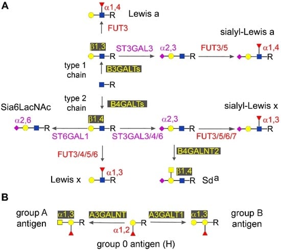 - Dotz, V.; Wuhrer, M. Histo-blood group glycans in the context of personalized medicine. Biochim. Biophys. Acta 2016, 1860, 1596–1607. [Google Scholar] [CrossRef] [PubMed]