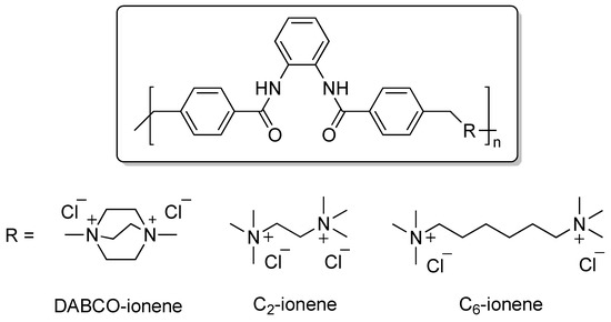 - Williams, S.R.; Long, T.E. Recent advances in the synthesis and structure—Property relationships of ammonium ionenes. Prog. Polym. Sci. 2009, 34, 762–782. [Google Scholar] [CrossRef]