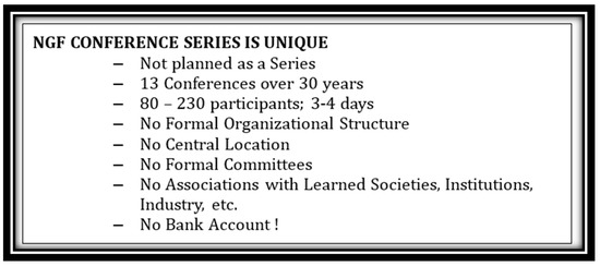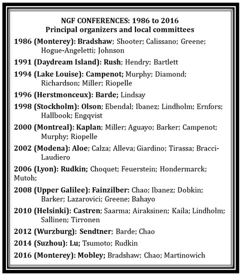 List of the complete 13 conferences in the NGF and Related Molecules series, 1986–2016, organizing committees and venue.