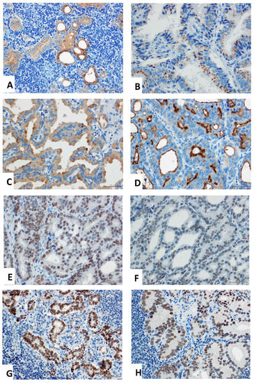 - Howarth, D.J.; Aronson, I.B.; Diamandis, E.P. Immunohistochemical localization of prostate-specific antigen in benign and malignant breast tissues. Br. J. Cancer 1997, 75, 1646–1651. [Google Scholar] [CrossRef] [PubMed]