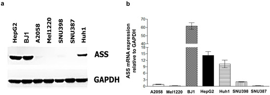 2.1. Determination of ASS Expression Level among Cancer Cell Types
