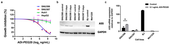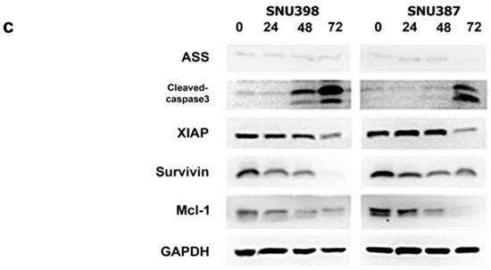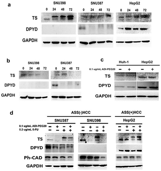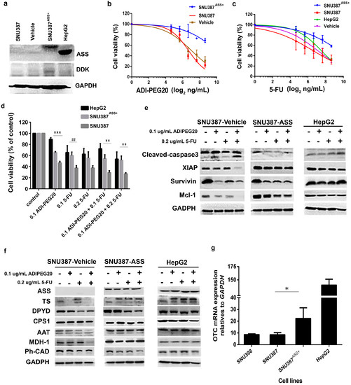- McAlpine, J.A.; Lu, H.-T.; Wu, K.C.; Knowles, S.K.; Thomson, J.A. Down-regulation of argininosuccinate synthetase is associated with cisplatin resistance in hepatocellular carcinoma cell lines: Implications for pegylated arginine deiminase combination therapy. BMC Cancer 2014, 14, 621. [Google Scholar] [CrossRef] [PubMed]