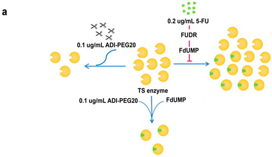 2.5. Effects of ADI-PEG20 on the Key Enzymes Involved in 5-FU Sensitivity
