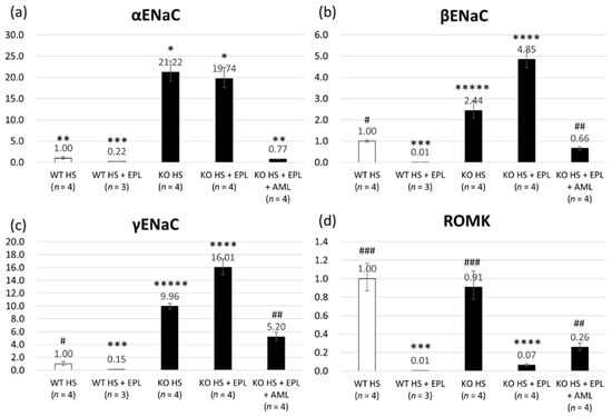 - Kakizoe, Y.; Kitamura, K.; Ko, T.; Wakida, N.; Maekawa, A.; Miyoshi, T.; Shiraishi, N.; Adachi, M.; Zhang, Z.; Masilamani, S.; et al. Aberrant ENaC activation in Dahl salt-sensitive rats. J. Hypertens. 2009, 27, 1679–1689. [Google Scholar] [CrossRef] [PubMed]