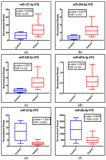 3.3. Comparison of HTS Data to Screens of MicroRNA Panels and qRT-PCR Analysis