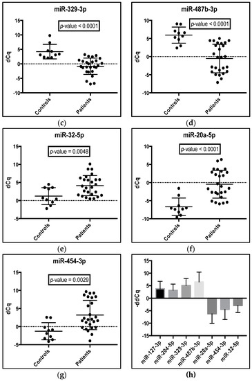 - Gattolliat, C.H.; Thomas, L.; Ciafrè, S.A.; Meurice, G.; Le Teuff, G.; Job, B.; Richon, C.; Combaret, B.; Dessen, P.; Valteau-Couanet, D.; et al. Expression of miR-487b and miR-410 encoded by 14q32.31 locus is a prognostic marker in neuroblastoma. Br. J. Cancer 2011, 105, 1352–1361. [Google Scholar] [CrossRef] [PubMed]