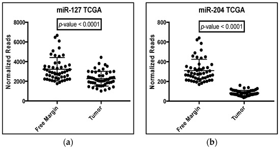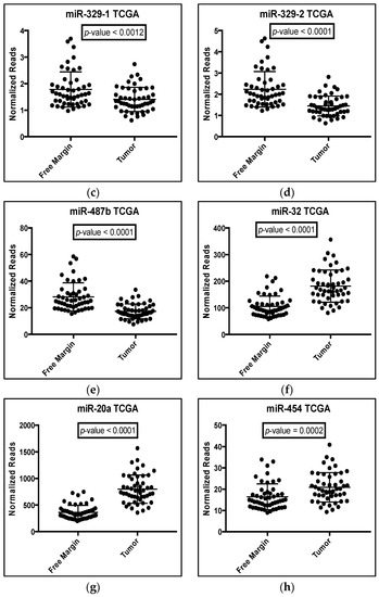 - Volinia, S.; Calin, G.A.; Liu, C.G.; Ambs, S.; Cimmino, A.J.; Petrocca, F.; Visone, R.; Lanza, G.; Scarpa, A.; Vecchione, A.; et al. A microRNA expression signature of human solid tumors defines cancer gene targets. Proc. Natl. Acad. Sci. USA 2006, 103, 2257–2261. [Google Scholar] [CrossRef] [PubMed]