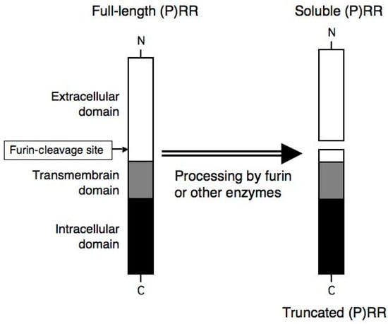 - Nakagawa, T.; Suzuki-Nakagawa, C.; Watanabe, A.; Asami, E.; Matsumoto, M.; Nakano, M.; Ebihara, A.; Uddin, M.N.; Suzuki, F. Site-1 protease is required for the generation of soluble (pro)renin receptor. J. Biochem. 2017, 161, 369–379. [Google Scholar] [CrossRef] [PubMed]