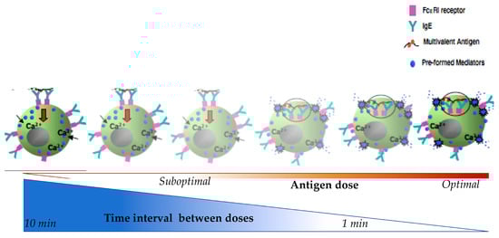 Furthermore, challenging with the same antigen after being desensitized does not induce activation [], however MCs can still be activated with different antigen stimulation, verifying the antigen specificity of DS (Figure 3e) [,]. This demonstrates that the mechanism of DS is an antigen-specific process and does not disable the IgE bounded FcεRI receptor for other antigens [].