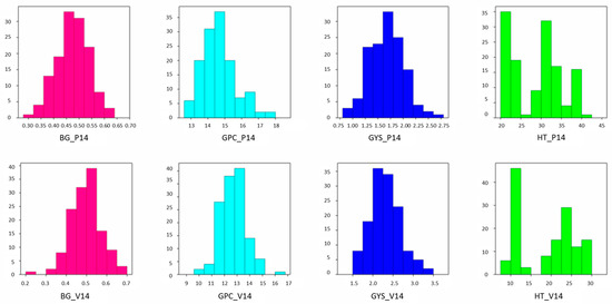 Correlation analyses (Table 2) between the various traits indicated significant and positive relationships for GPC and HT in Valenzano 2014 (p ≤ 0.01). A significant and negative correlation was detected between GPC and BG (p ≤ 0.01) in Valenzano 2014. Negative correlations between GPC and GYS were observed at both locations (p ≤ 0.001).