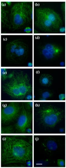- Jordan, M.A.; Thrower, D.; Wilson, L. Effects of vinblastine, podophyllotoxin and nocodazole on mitotic spindles. Implications for the role of microtubule dynamics in mitosis. J. Cell Sci. 1992, 102, 401–416. [Google Scholar] [PubMed]