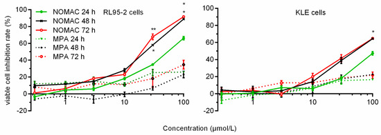 2.1. NOMAC Inhibited Cell Viability in a Dose-Dependent Manner