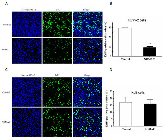 2.2. Effect of NOMAC on Cell Proliferation of RL95-2 and KLE