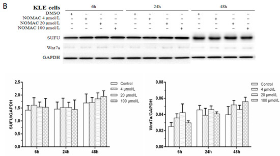2.5. Effects of NOMAC on the Protein Levels of SUFU and Wnt7a in RL95-2 and KLE Cells