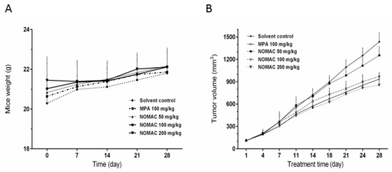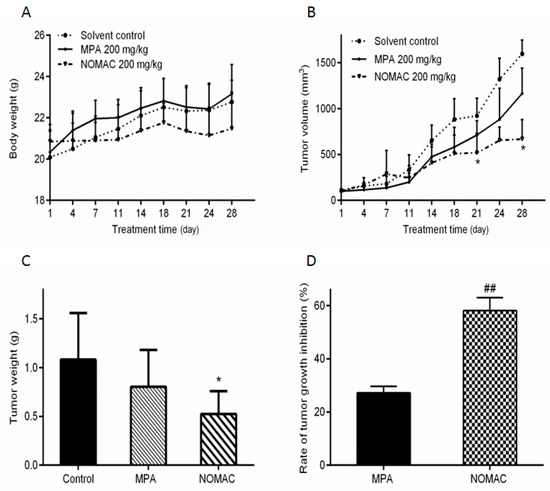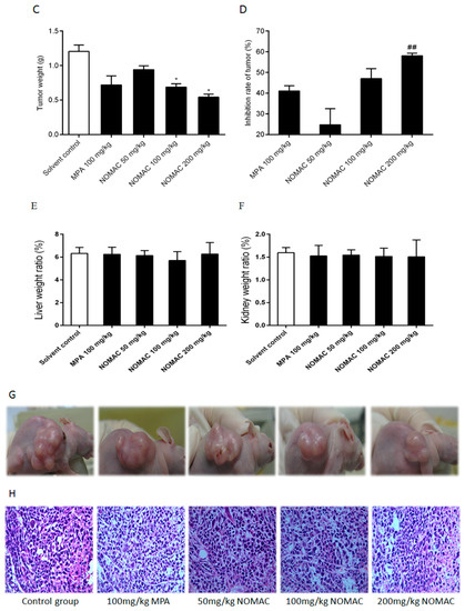 2.6. NOMAC Inhibits Tumor Growth In Vivo