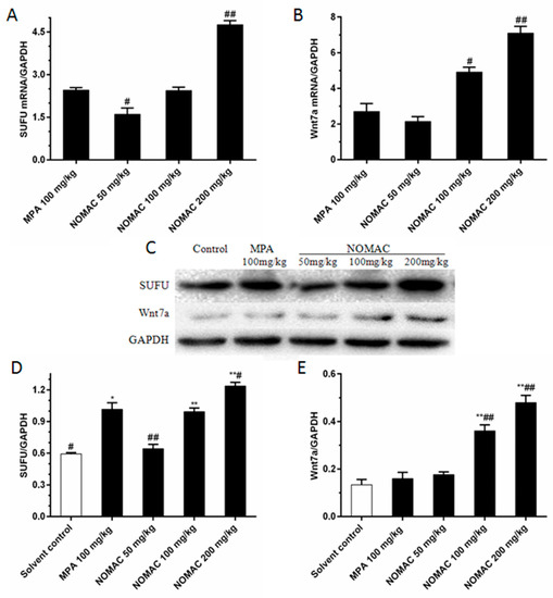 Chicago/Turabian StyleMa, A-ying, Shu-wu Xie, Jie-yun Zhou, and Yan Zhu. 2017. "Nomegestrol Acetate Suppresses Human Endometrial Cancer RL95-2 Cells Proliferation In Vitro and In Vivo Possibly Related to Upregulating Expression of SUFU and Wnt7a" International Journal of Molecular Sciences 18, no. 7: 1337. https://doi.org/10.3390/ijms18071337