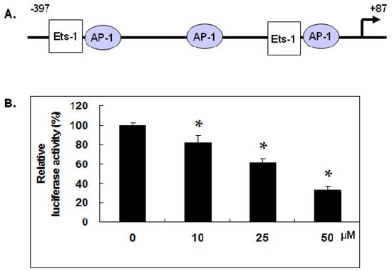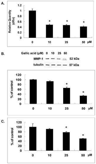 2.3. Gallic Acid Inhibited MMP-1 Promoter Activity