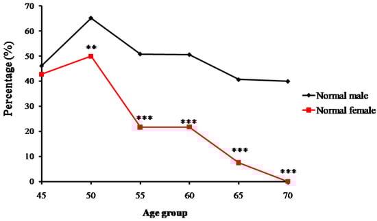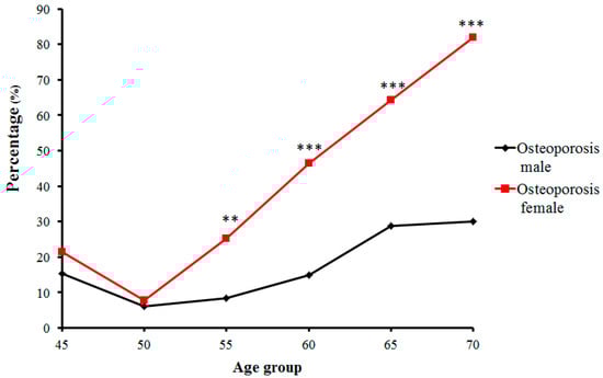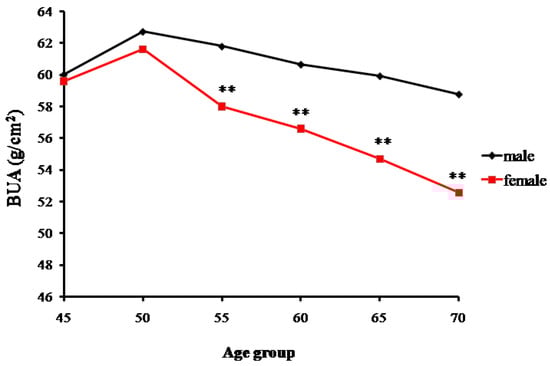 2.1. The Bone Mass Decreasing Trends of the Male and Female Groups with Age