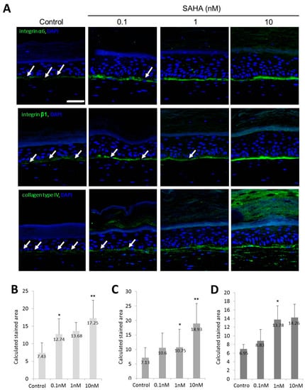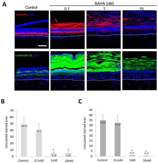 2.2. Reconstruction of the Skin Equivalent and the Effect of Suberoylanilohydroxamic Acid