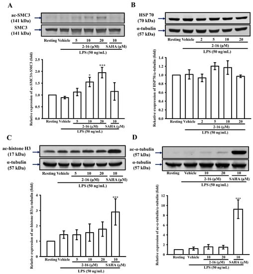 Jan, J.-S.; Chou, Y.-C.; Cheng, Y.-W.; Chen, C.-K.; Huang, W.-J.; Hsiao, G. The Novel HDAC8 Inhibitor WK2-16 Attenuates Lipopolysaccharide-Activated Matrix Metalloproteinase-9 Expression in Human Monocytic Cells and Improves Hypercytokinemia In Vivo. Int. J. Mol. Sci. 2017, 18, 1394. https://doi.org/10.3390/ijms18071394