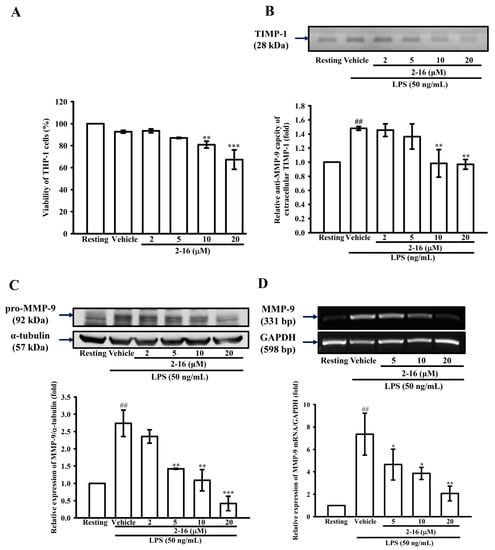 2.3. WK2-16 Inhibits the LPS-Induced Expression of Intracellular MMP-9 Protein and mRNA