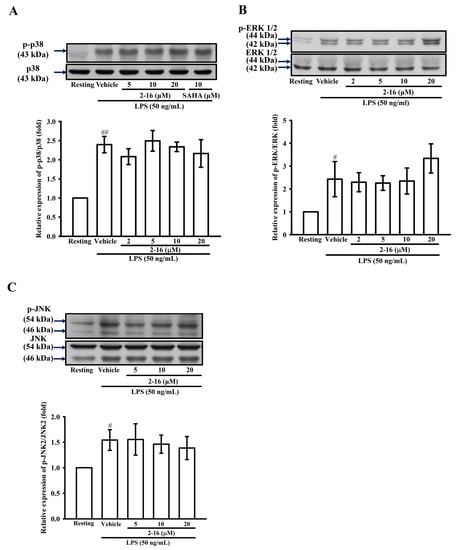 2.6. The Effects of WK2-16 on the LPS-Induced MAPK Activation in THP-1 Cells