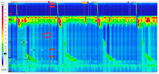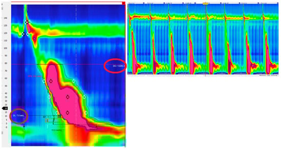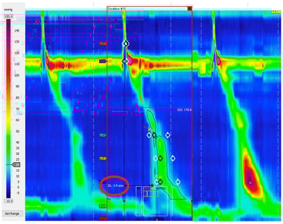 Ineffective esophageal motility is defined by ≥ 50% ineffective swallows (failed or weak—DCI < 450 mmHg/s/cm) (Figure 4).