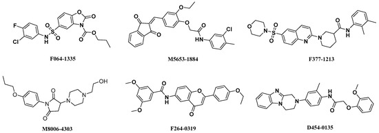 Structures of retrieved hits targeting α1β1γ1 AMPK isoform from ChemDiv database.