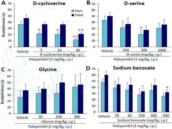 2.1. Effects of Glycine-Site Stimulants of N-Methyl-d-aspartate (NMDA) Receptors on Haloperidol-Induced Bradykinesia