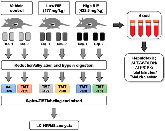 2.2. Quantitative Proteomic Analysis of RIF-Administered Liver Proteins