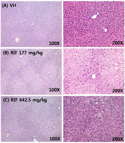 - Tasduq, S.A.; Kaiser, P.; Sharma, S.C.; Johri, R.K. Potentiation of isoniazid-induced liver toxicity by rifampicin in a combinational therapy of antitubercular drugs (rifampicin, isoniazid and pyrazinamide) in Wistar rats: A toxicity profile study. Hepatol. Res. 2007, 37, 845–853. [Google Scholar] [CrossRef] [PubMed]