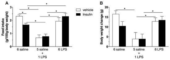 2.2. Hypophagic Effect of Central Insulin Injection Is Blunted in Acute and Prolonged Lipopolysaccharide—Treated Rats