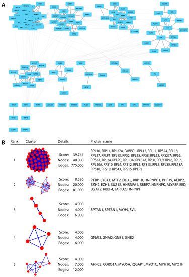 - Morris, J.H.; Apeltsin, L.; Newman, A.M.; Baumbach, J.; Wittkop, T.; Su, G.; Bader, G.D.; Ferrin, T.E. clusterMaker: A multi-algorithm clustering plugin for Cytoscape. BMC Bioinform. 2011, 12, 436. [Google Scholar] [CrossRef] [PubMed]
