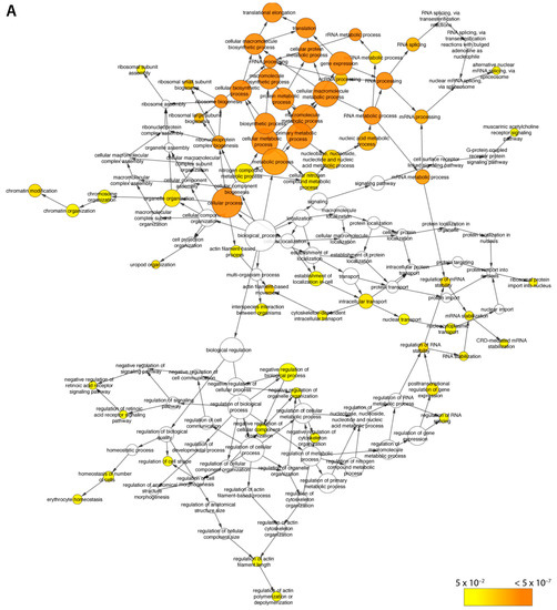 - Maere, S.; Heymans, K.; Kuiper, M. BiNGO: A Cytoscape plugin to assess overrepresentation of gene ontology categories in biological networks. Bioinformatics 2005, 21, 3448–3449. [Google Scholar] [CrossRef] [PubMed]