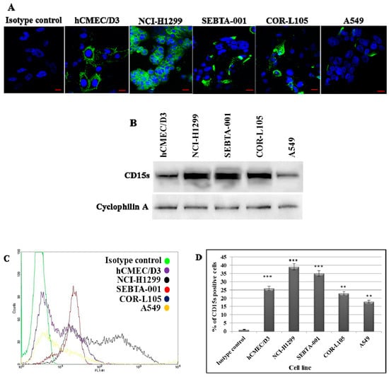 - Kadota, A.; Masutani, M.; Takei, M.; Horie, T. Evaluation of expression of CD15 and CD15s in non-samll cell lung cancer. Int. J. Oncol. 1999, 15, 1081–1089. [Google Scholar] [PubMed]
