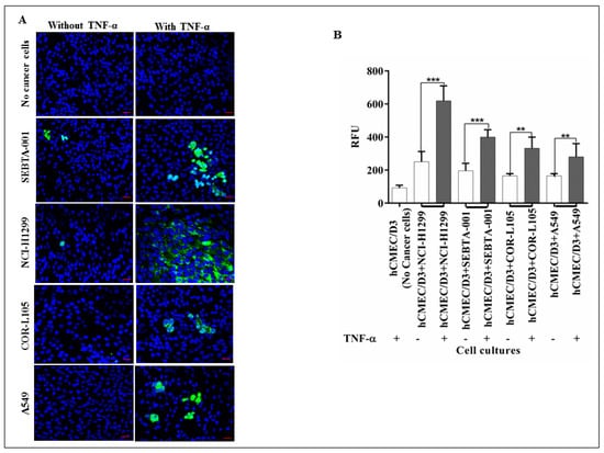 2.2. The Absence of CD62E Reduced Cancer Cell–Brain Endothelium Adhesion